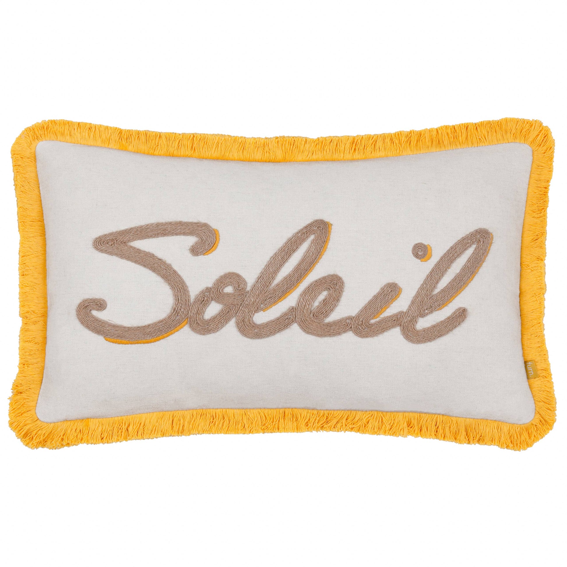 Apportez une touche de style sans effort à votre intérieur avec le coussin brodé Soleil. Alliant un design contemporain à une ambiance d'évasion, ce coussin unique redéfinit le style personnel chez vous. La broderie en jute tissée crée un motif saisissant, à la fois moderne et tropical, tandis que la bordure à franges ajoute une finition détendue mais sophistiquée. Parfait pour décorer un canapé, un fauteuil ou un lit, son recto et verso sobres assurent une grande polyvalence, lui permettant de s'harmoniser avec différents intérieurs. Le coussin Soleil est conçu pour captiver et inspirer, faisant de lui un ajout remarquable dans toute maison.