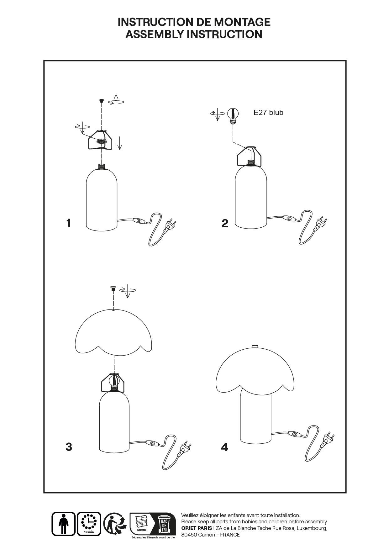 Entièrement en métal. Adorable et intemporelle. Compatible avec les ampoules E27, 25W max (ampoule non fournie)