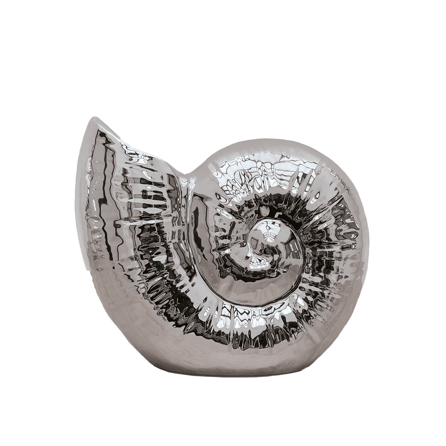 Vase en forme de coquillage, revisité en argenté pour une touche disco des années passées.